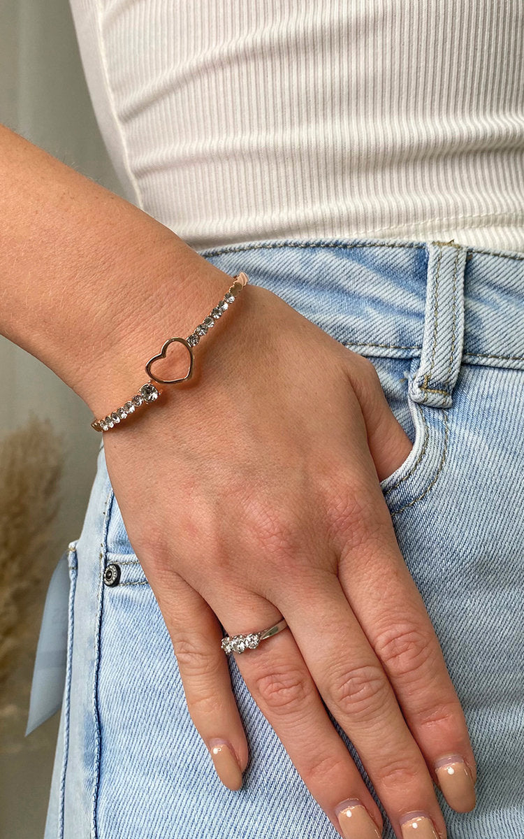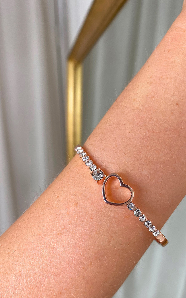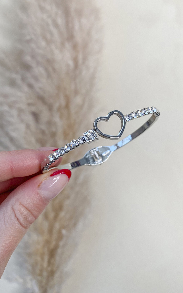 Diamante Bangle with Love Heart Detail