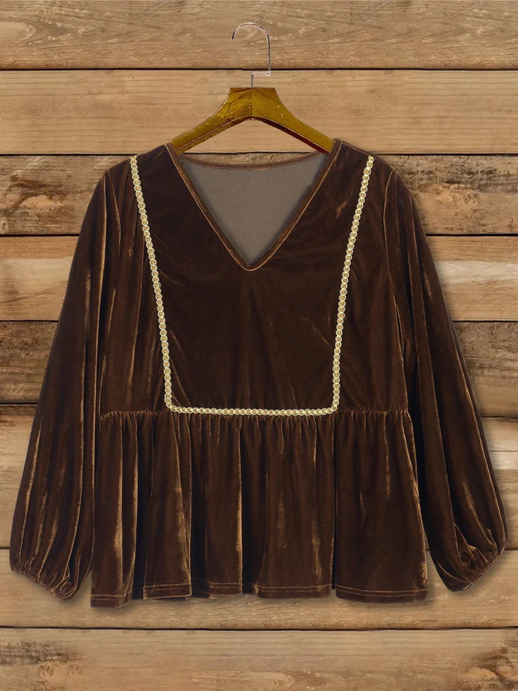 Curve Brown Velvet V-Neck Long-Sleeve Top